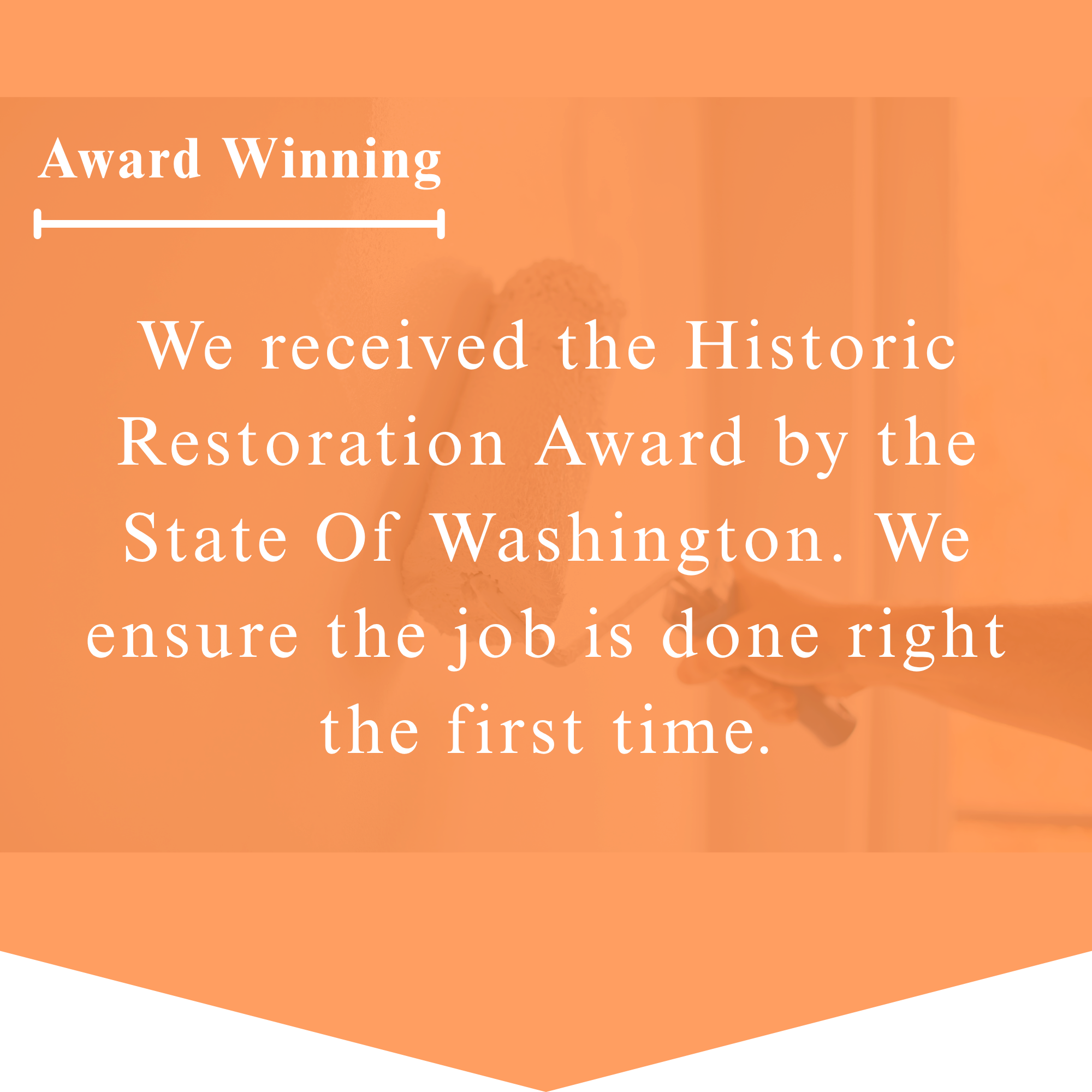At Paint Crafters, we specialize in all phases of painting for your residential, commercial and industrial needs. Hiring us is all about getting the job done right the first time. With our expertise, you can be sure that our highly trained craftsmen can deliver the quality that you are looking for. In fact, Paint Crafters has been given a Historic Restoration Award by the state of Washington, ensuring we are the industry-leading painting company throughout the state of Washington. Find out why we are your #1 Coating Solution.